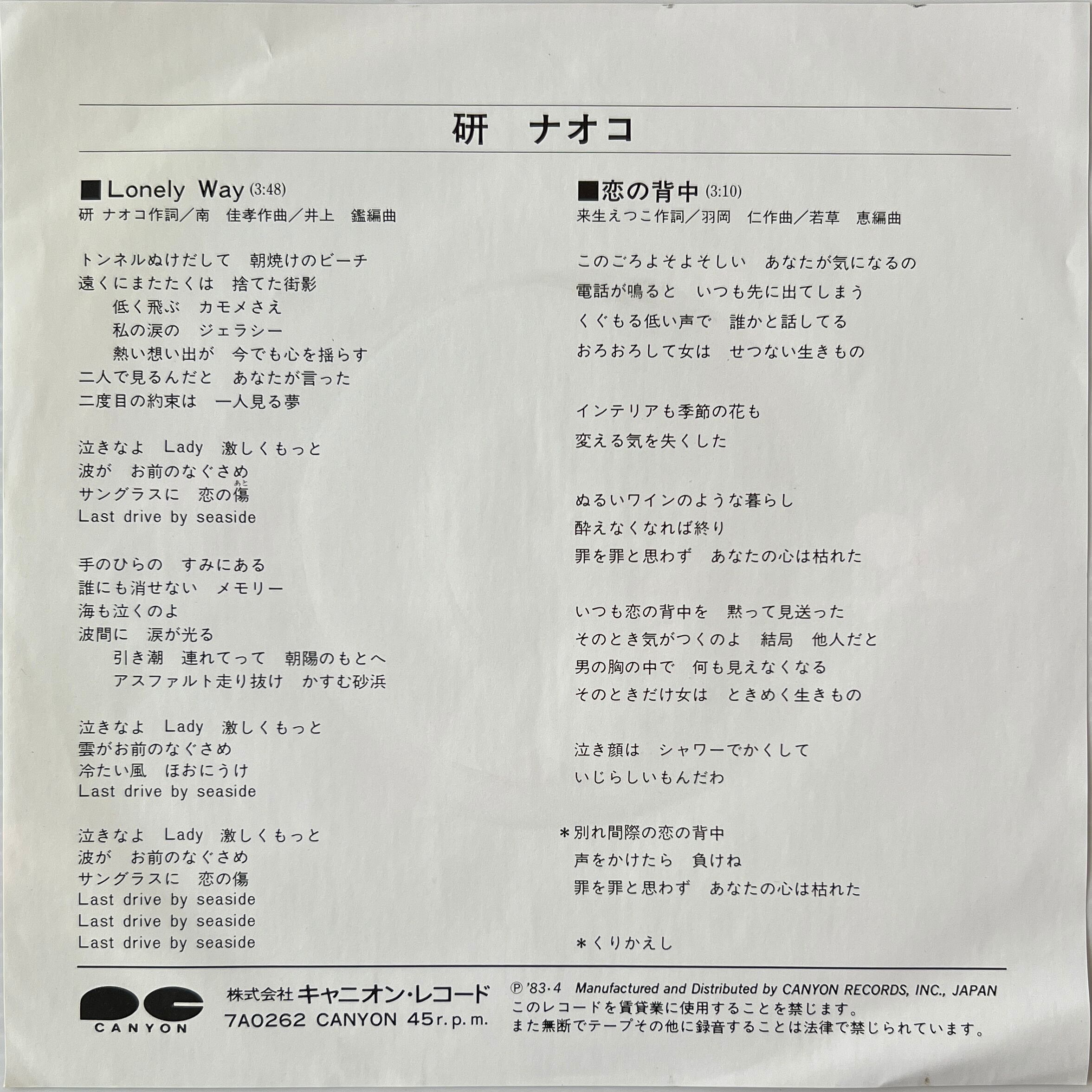 〔EP〕研ナオコ/Lonely Way / 恋の背中
