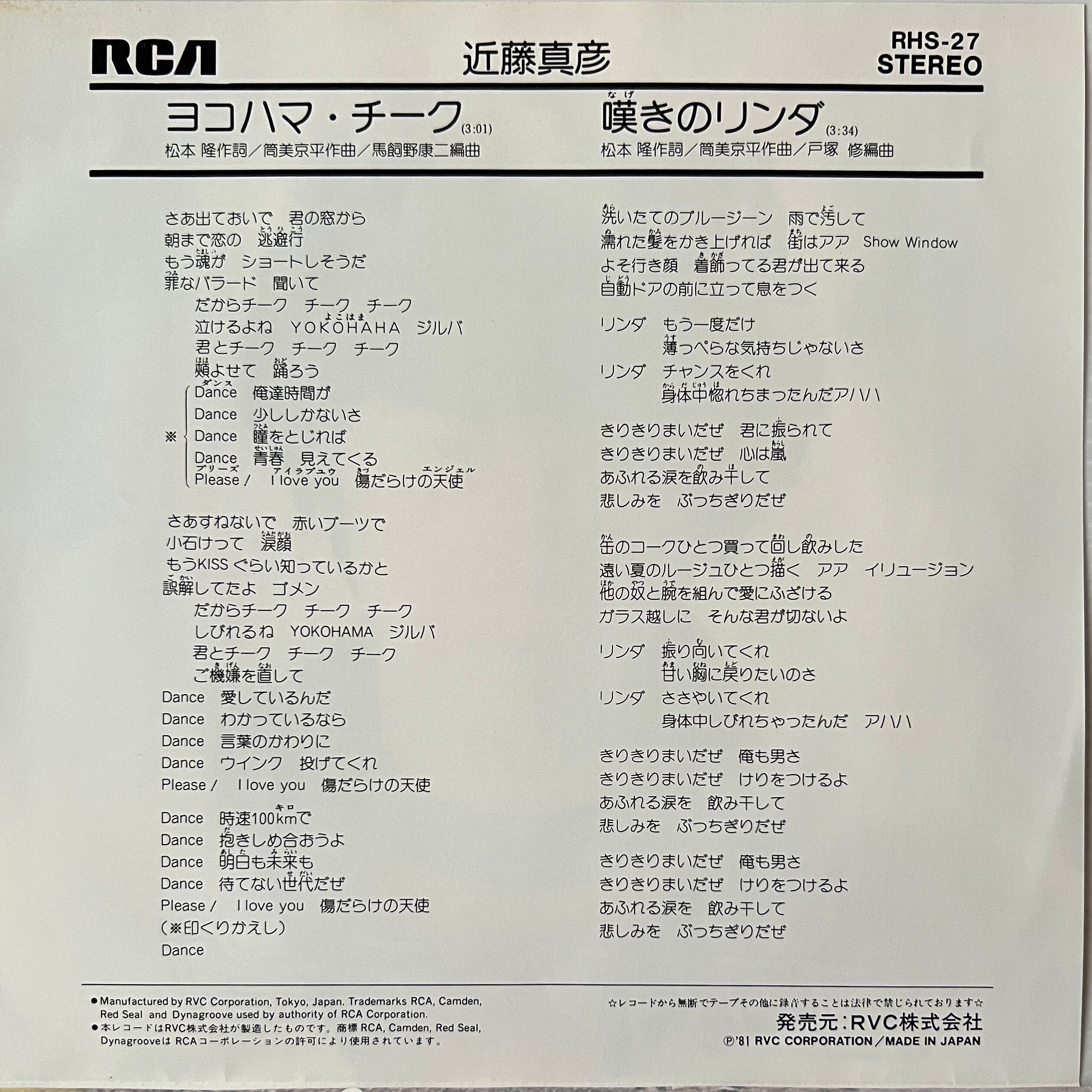 〔EP〕近藤真彦/ヨコハマ・チーク / 嘆きのリンダ