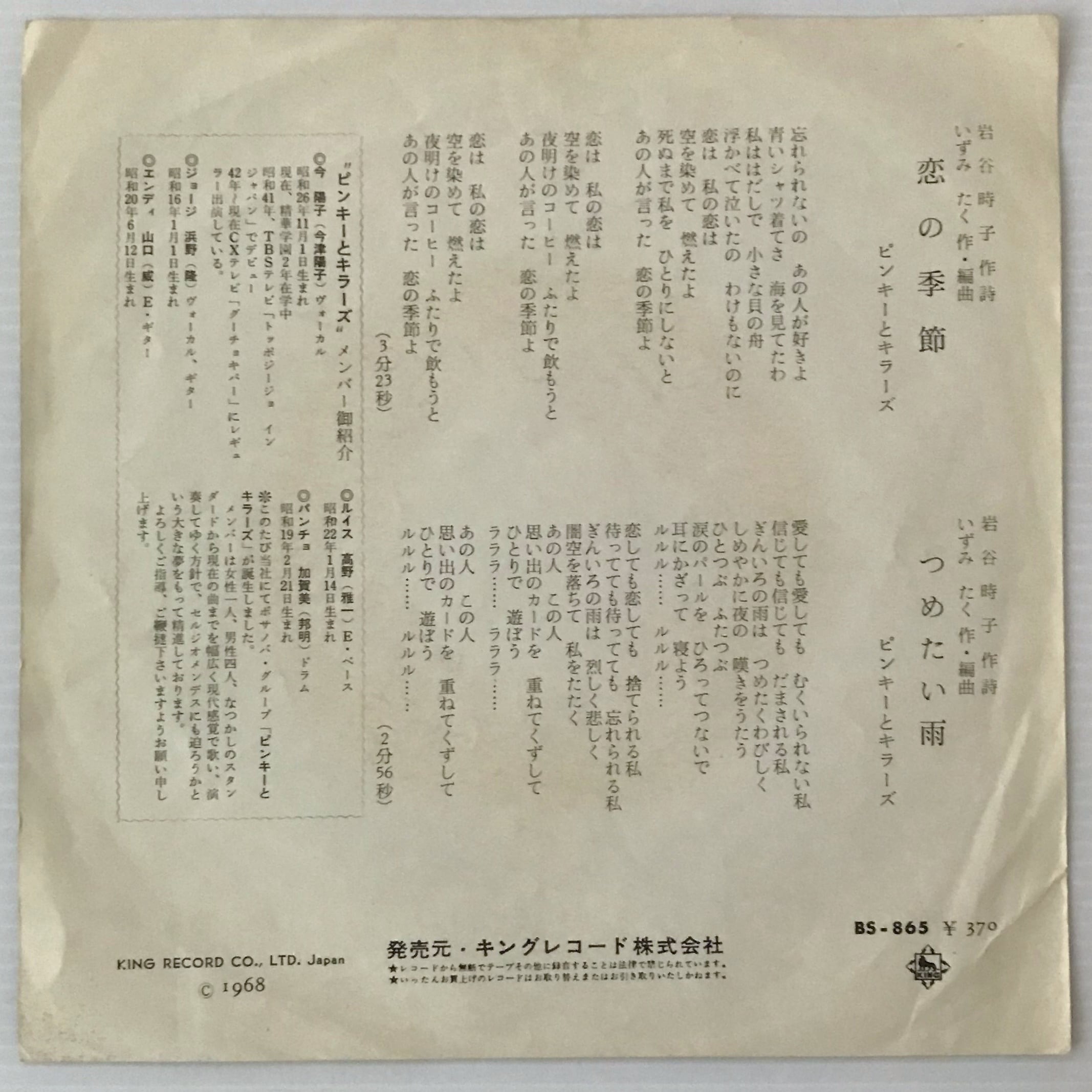 〔EP〕ピンキーとキラーズ/恋の季節/つめたい雨