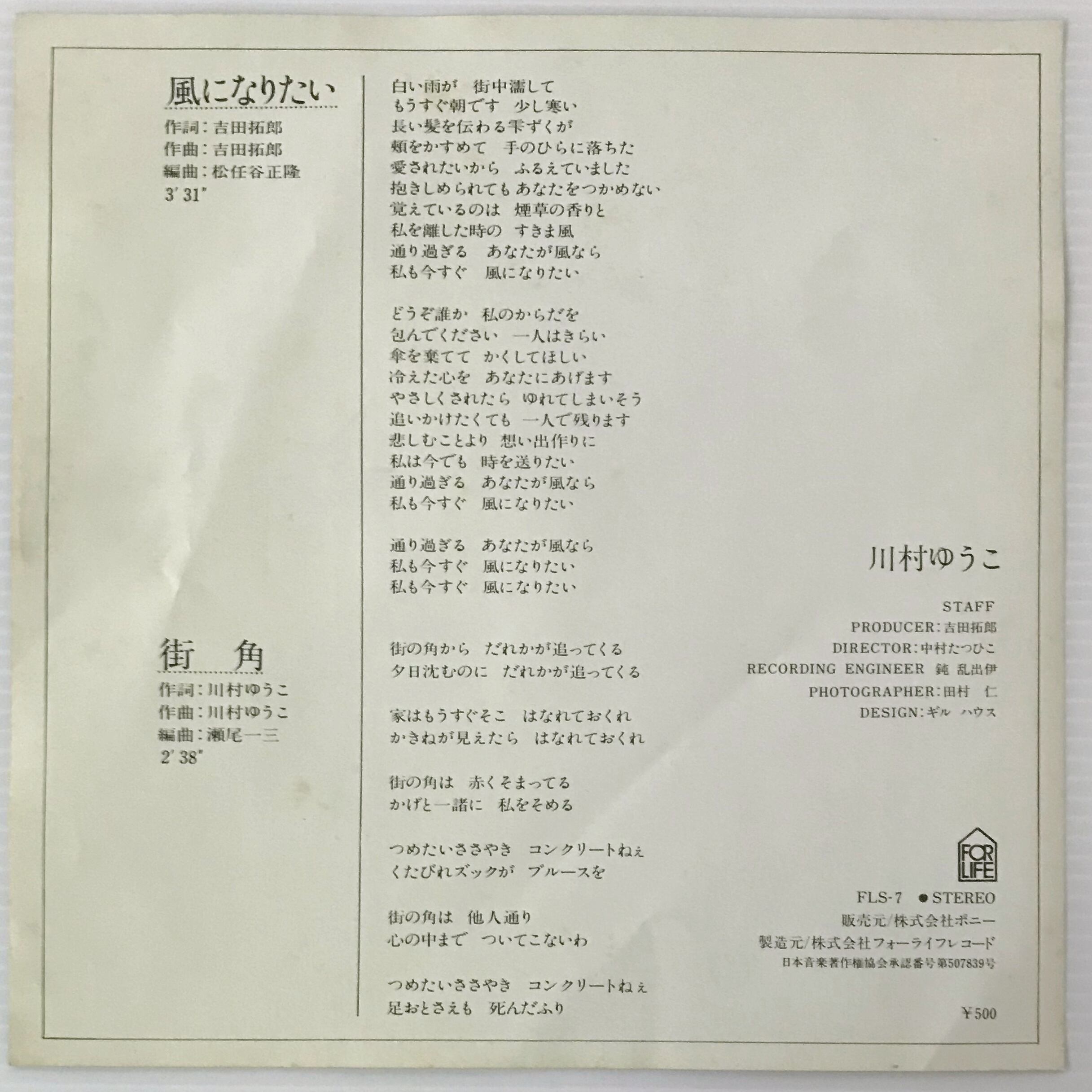 〔EP〕川村ゆうこ/風になりたい/街角