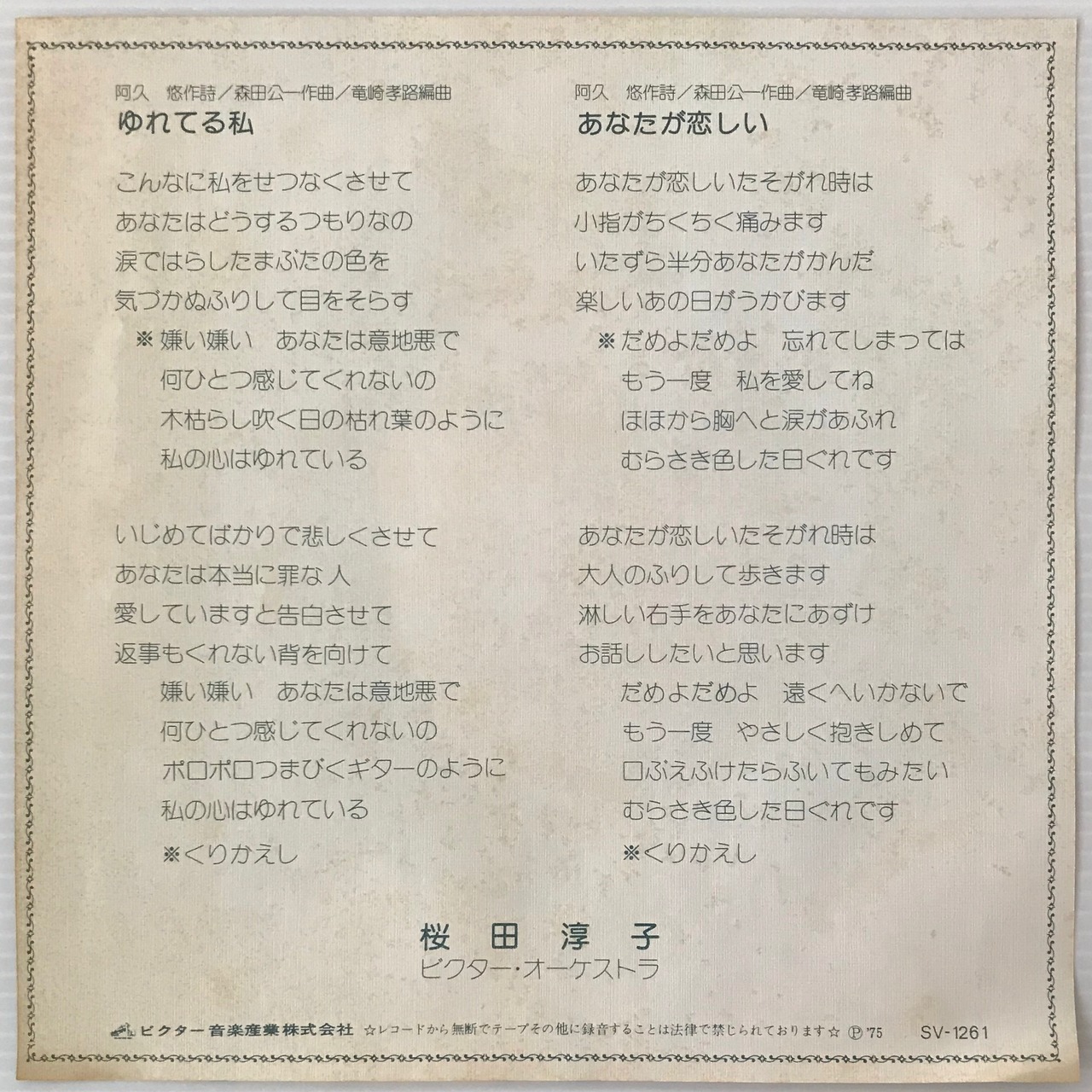 〔EP〕桜田淳子/ゆれてる私 / あなたが恋しい