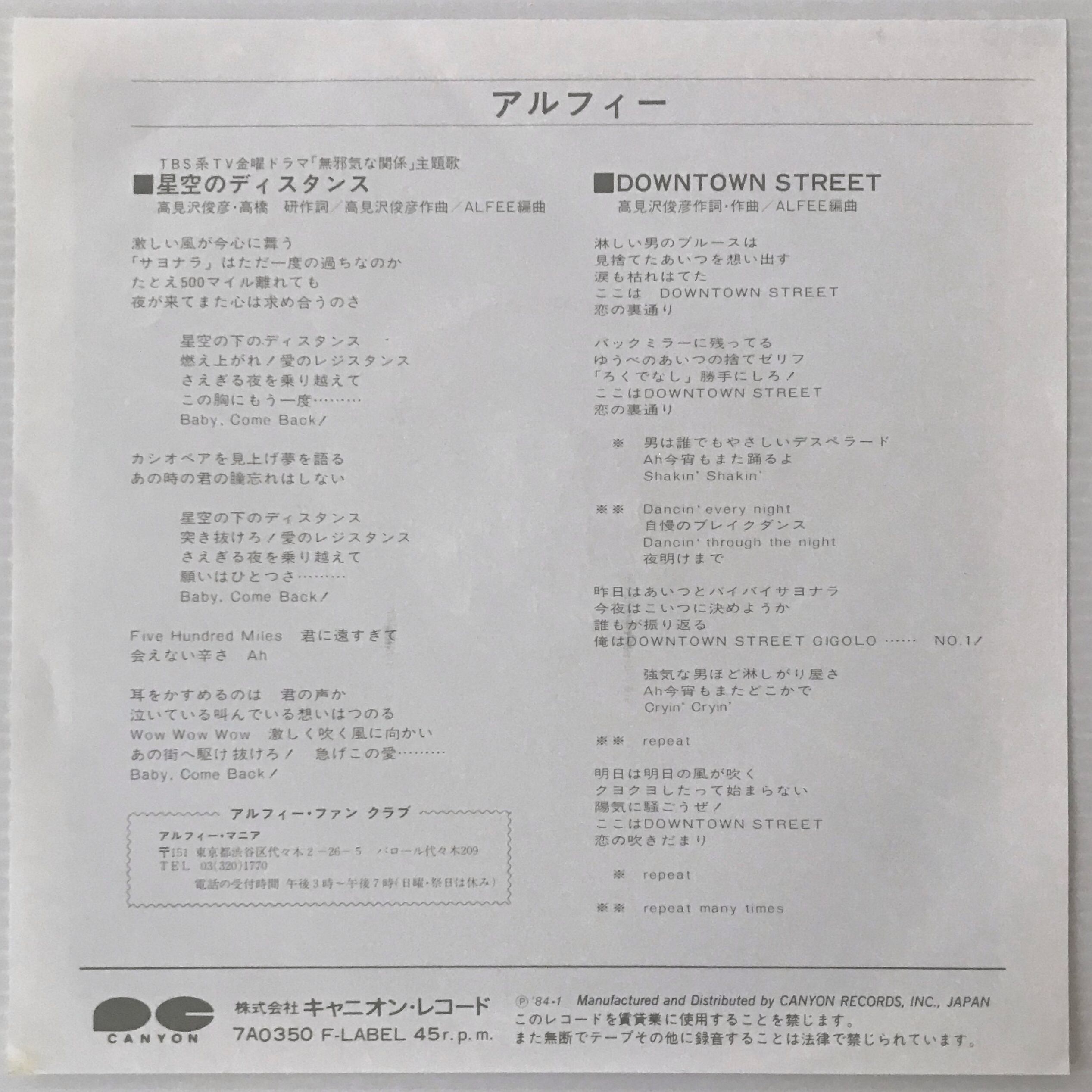 〔EP〕アルフィー/星空のディスタンス / Downtown Street